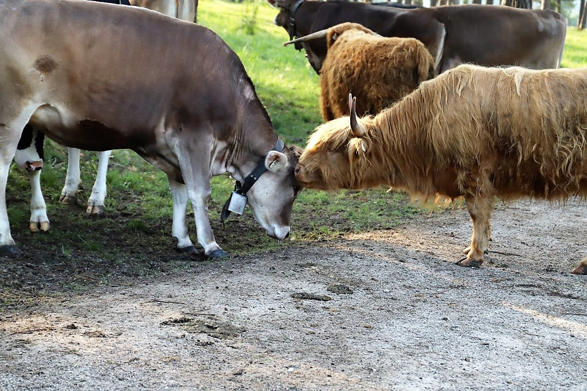 Das geht aber auf gar keinen Fall: Almtiere nicht streicheln oder füttern. Für Weidetiere ist ein fremder Hund ein potenzieller Feind. Er wird vor allem von Muttertieren angegriffen, die ihre Kälber schützen wollen. Tiere verhalten sich instinktiv somit nicht anders als Menschen.